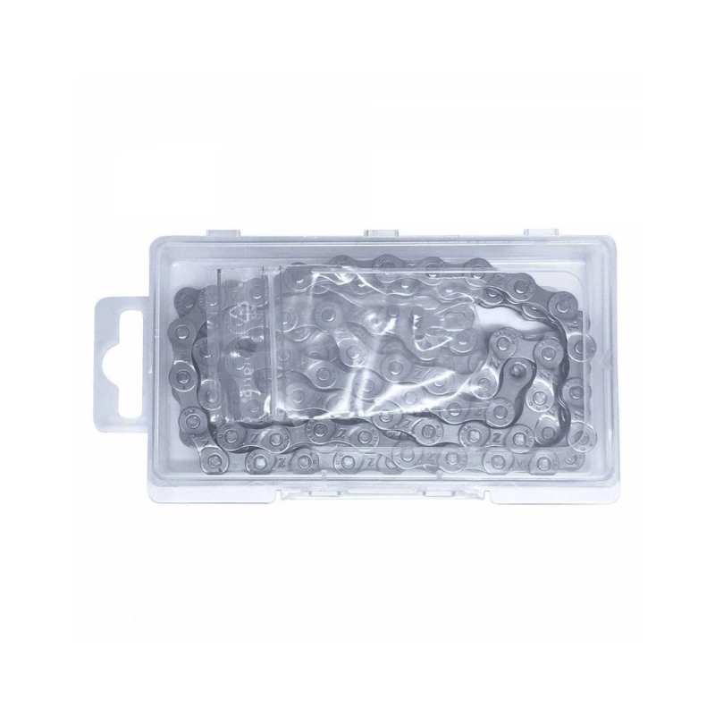 La cadena KMC Z8 es compatible con todos los sistemas de cambio de 8 velocidades de Shimano, Campagnolo y SRAM, y está diseñada para el uso turístico y urbano. Tiene placas exteriores niqueladas y no es direccional.
