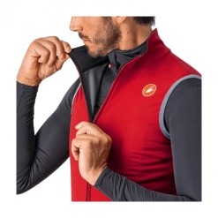 El chaleco Castelli Perfetto RoS GORE-TEX INFINIUM™ Rosso Corsa está fabricado con tejido GORE-TEX INFINIUM™ en la parte delantera y los hombros para ofrecer la máxima protección contra el agua y el viento.